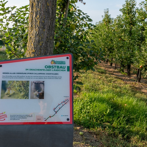 Bauernweg in Wachtberg zum Thema "Obstbau im Drachenfelser Ländchen" Direkt an der Rheinischen Apfelroute könnt ihr euch bei einem kurzen Spaziergang über den hiesigen Obstanbau informieren und dabei die wunderbare Aussicht auf das Siebengebirge genießen. Der sogenannte Bauernweg wurde vor einigen Jahren vom Schneiders Obsthof in Wachtberg initiiert und mit Informationstafeln zum Anbau vor Ort ausgestattet, so dass der Besucher auch direkt in der Natur sehen kann, was auf den Schildern erklärt wird. Der Bauernweg zum Obstbau im Drachenfelser Ländchen beginnt in Wachtberg-Berkum und kann bequem auf einer Strecke von rund 3 km erlaufen werden. Ihr kommt am 16 Schildern vorbei, die über die Landschaft und den Anbau sowie die verschiedenen Sorten informieren.